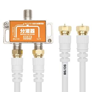 - ホーリック アンテナダブル分波器 4K8K放送(3224MHz)/BS/CS/地デジ/CATV 対応 ケーブル4本付属 1m HAT-WSP01