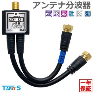 - アンテナ分波器 4K8K放送 ケーブル付き 出力 ケーブル一体型 3224MHz BS CS 地デジ CATV 対応 ブラック 金メッキ 4C 15cm TS-ABGN01BK TARO'S