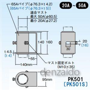 - マスプロ 側面付けマスト取付金具 適合マスト:Φ27.2〜60.5mmのマスト用(20〜50A) ステンレス製 PK501S