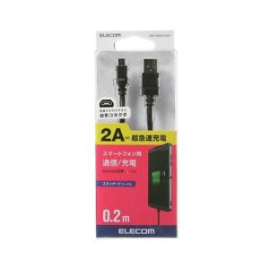 - microUSBケーブル 2A出力 スタンダード 通信・充電 0.2m ブラック メーカー在庫品