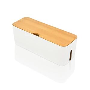 - Baskiss ケーブルボックス テーブルタップ収納ボックス 天然木&樹脂製 ホワイト