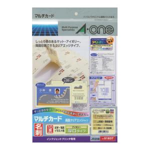 - エーワン マルチカード 名刺10面 両面クリアエッジタイプ 厚口 アイボリー