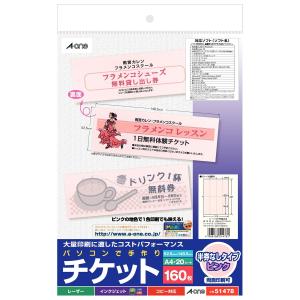 - エーワン パソコンで手作りチケット 各種プリンタ兼用紙(ピンク) A-one A4判 8面 半券なしタイプ 51478 返品種別A