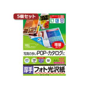 - サンワサプライ 【5個セット】サンワサプライ カラーレーザー用フォト光沢紙・厚手 LBP-KAGNA4N-100X5