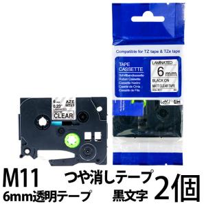 - ピータッチキューブ用 互換TZeテープ 6mm 透明テープ つや消し 黒文字 TZe-M11対応 お名前シール マイラベル マットタイプ 2個セット