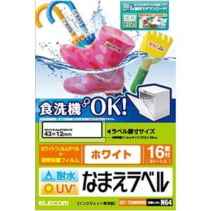 - エレコム EDT-TCNMWH5 耐水耐候なまえラベル ホワイト 43×12mm:48枚(16面×3シート)