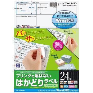- コクヨ KPC-E124-100N プリンタを選ばない はかどりラベル A4 24面 100枚