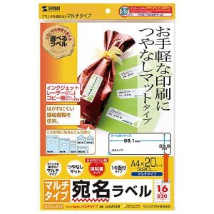 - サンワサプライ マルチラベル 16面 A4 16面、20シート、320ラベル入り LB-EM12N