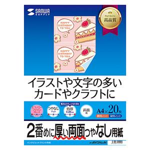 - サンワサプライ インクジェット用紙「スーパーファインつやなしマット紙」[A4/ 両面/ 厚手/ 20枚] SANWA SUPPLY JP-ERV5NA4N 返品種別A