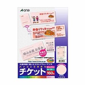 - エーワン パソコンで手作りチケット ピンク A4判 8面 半券付タイプ 51475