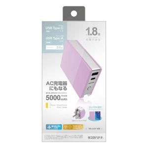 - ラスタバナナ 5000mAh ACコンセント付リチウム A×1 C×1ポート3.0A出力 ライトパープル BLI050AC3AK01LP