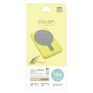- ラスタバナナ calon 5000mAh マグネット付ワイヤレスモバイルバッテリー WC10W C5V2.4A出力 ライムイエロー [1ポート] RLI050WCC10W01LY