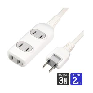 - 電源タップ 3個口 延長コード すき間電源タップ 延長ケーブル 1m 2m 3m 5m 10m コンセントタップ 延長 コード コンセント オフィス 会社 新生活 125V ホワイト