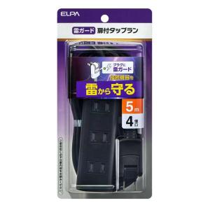 - 朝日電器(ELPA) 扉付タップラン 雷ガード 3個口 5m ブラック 【品番:WBT-N3050SB(BK)】