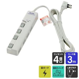 - 朝日電器 ELPA エルパ 電源タップ LEDランプスイッチ付タップ 耐雷サージ機能付 上挿し 4個口 1m WLS-LU410MB W