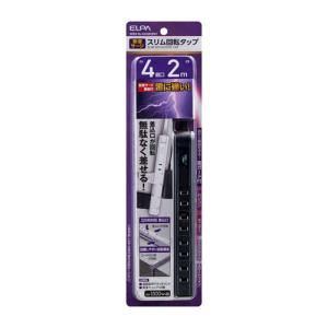 - エルパ ELPA 耐雷 4個口 2m スリム回転 タップ ブラック WBS-SL402SB(BK)