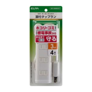 - エルパ ELPA 扉付きタップラン 4個口 3m ホワイト WBT-N4030B(W)