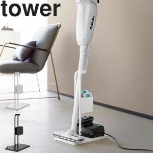 - 山崎実業 tower スティッククリーナー紙パック&充電器収納スタンド タワー 掃除機立て スタンド コンパクト ホワイト ブラック 10260 10261