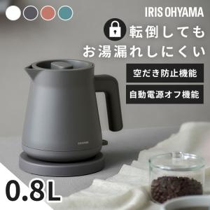 - 電気ケトル 0.8L ケトル おしゃれ 小型 湯漏れ防止 湯沸かし ポット 電気ポット 一人暮らし アイリスオーヤマ IBKT-800 *