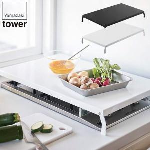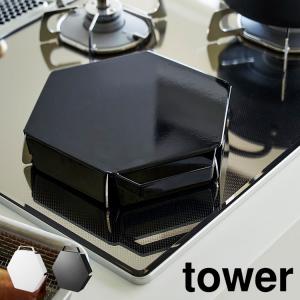 - 山崎実業 立てて置ける五徳カバー tower タワー ガスコンロ コンロ 油はね 汚れ 防止 ホワイト ブラック おしゃれ 1413 1414