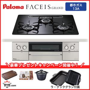 - ビルトインコンロ パロマ フェイシスグランド 都市ガス 3口ガスコンロ 75cm幅 水なし両面焼 ラ・クックグラン同梱 ブラック PD-893WS-U75CK-13A