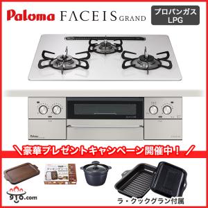 - ビルトインコンロ パロマ フェイシスグランド 都市ガス 3口ガスコンロ 75cm幅 水なし両面焼 ラ・クックグラン同梱 シルバー PD-893WS-U75GH-13A