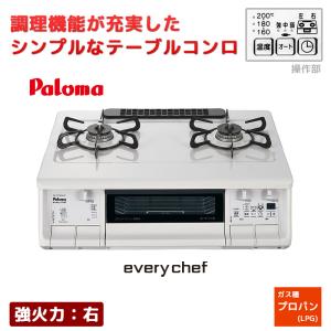 - パロマ テーブルコンロ エブリシェフ 2口 3V乾電池タイプ 強火力:右 プロパンガス LPG 59cm 水なし両面焼グリル PA-380WHA-R-LPG