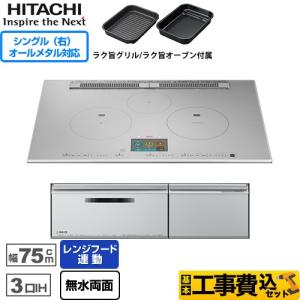- 日立 IH クッキングヒーター 単相200V ビルトイン 75cm幅 IH3口 HT-N8STWFS 火加減マイスター N8Tシリーズ 適温調理