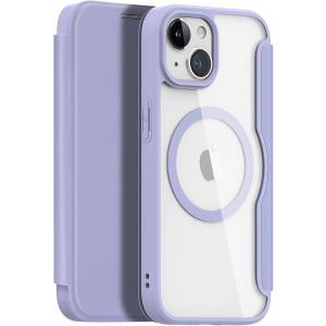 - iPhone ケース 手帳型 ワイヤレス充電対応 薄型 PUレザー 背面 クリア MDM (パープル, iPhone 15 Plus)