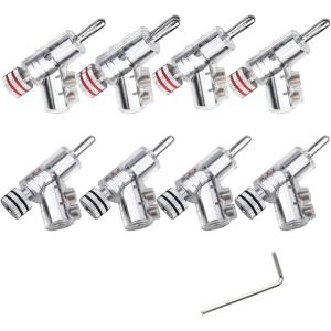 - バナナプラグ コネクタ 端子 L字 オーディオ ジャック スピーカー ねじ込み式 固定 4mm (ロジウムメッキ, 赤4 黒4 計8個)