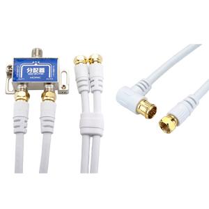 - HORIC アンテナ分配器 ケーブル2本付属 1m + アンテナケーブルF型差込式/ネジ式コネクタ L字/ストレートタイプ 1.5m ホワイ