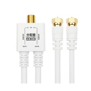 - アンテナ2分配器 24金メッキ BS/CS/地デジ/4K8K放送対応 全端子電流通過型 ケーブル付属(S-4C-FB) 10cm ホワイト 取り寄せ商品