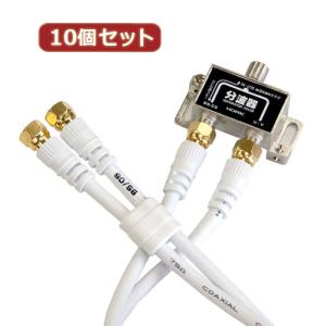 - 10個セット HORIC アンテナ分配器 ケーブル2本付属 1m HAT-2SP340WHX10