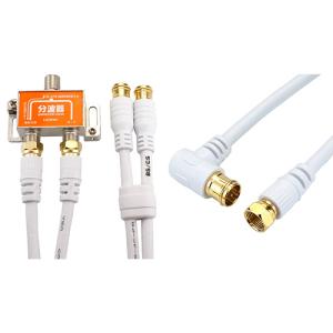 - HORIC アンテナ分配器 ケーブル2本付属 1m + アンテナケーブルF型差込式/ネジ式コネクタ L字/ストレートタイプ 3m ホワイト
