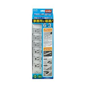 - エルパ (ELPA) 事務所向けタップ 事務 延長コード オフィス カバー付 6個口 3m マグネット 抜け止め OAT-JPC63B