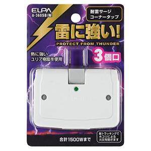 - エルパ (ELPA) サージ付タップ コンセント 雷ガード 耐雷 3個口 125V 15A 節電 A-360SB(W)