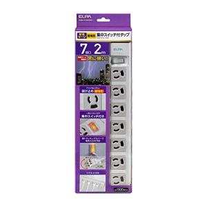 - エルパ (ELPA) マルチタップ コンセント 抜けにくい 雷ガード 集中スイッチ 3P 7個口 2m マグネット WBN-S7203B(G)
