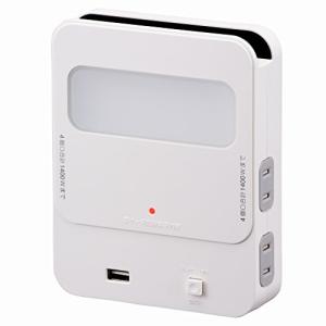 - オーム電機 電源タップ 4口拡張コンセント コンセント4個口+USBポート1個口 ナイトライト/スマホスタンド付 雷ガード 寝室用 ホワイト T