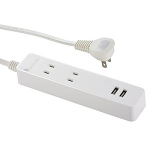 - オーム(OHM) テーブルタップ USBポート2個付 雷サージ軽減 2個口 1m ホワイト HS-TU21N78W 00-2778 オーム電機