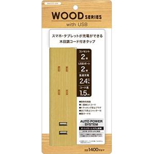 - トップランド(Topland) USB 電源タップ 雷ガード コンセント2個口 USBポート2個口 延長コード 1.5m 木目調コード オートパ