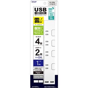 - トップランド(Topland) USB 電源タップ AC4個口 USBポート2個口 延長コード 1m 雷ガード 個別スイッチ ほこり防止シャッタ