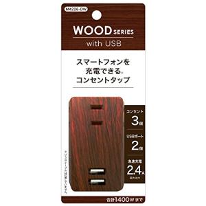 - トップランド(TOPLAND) 3個口 コンセントタップ & USB充電 2ポート 急速充電2.4A 合計1400Wまで ダークウッド M422
