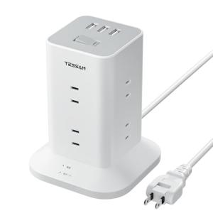 延長コード 1m 電源タップ タワー mini型 8個AC差込口 3個USBポート 180°スイングプラグ TESSAN テーブルタップ 蛸足コ