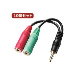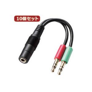 - サンワサプライ 【10個セット】 サンワサプライ ヘッドホン+マイク用変換アダプタケーブル(3極メスx2→4極オス) KM-A25-005