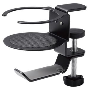 - エレコム ヘッドホンスタンド ホルダー クランプ式 ドリンクホルダー付 デスク下 収納 ブラック HP-DSDSKDBK