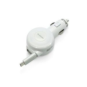 - (2個セット)エレコム MPA-CCC04WH カーチャージャー シガーソケット タイプCケーブル 巻き取り USBポート×1 ( 3.0A出力 ) ホワイト