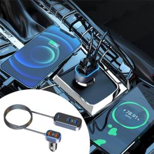 AUSTYLCO 車用充電器 車載分配器 シガーソケット リアチャージャー 延長充電器(ケーブル付き) 1.5m延長ケーブル 6台同時充電 12