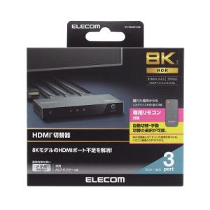 - エレコム HDMI切替器 3入力1出力 8K 60Hz 4K 120Hz HDMI2.1 手動/自動 リモコン付 ブラック メーカー在庫品