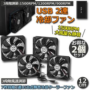 - USBファン 2個セット 12cm 2連 3段階調節 静音 スピード 冷却ファン 送風機 扇風機 強力 パソコン 1500RPM 1200R