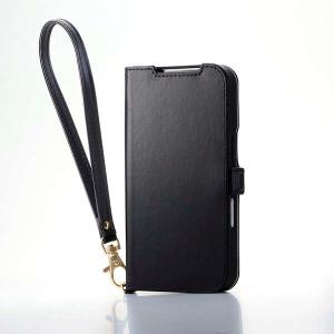 - あすつく エレコム iPhone 17 Pro ケース レザー 手帳型 マグネット 衝撃吸収 ハンドストラップ付 スタンド機能付 ブラック
